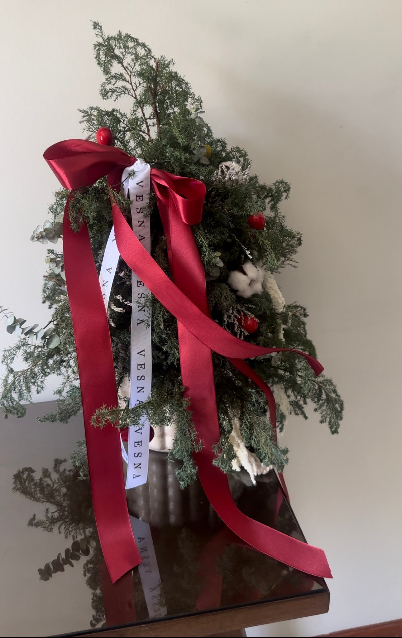 Inspirado en la magia de un bosque nevado, este arreglo fusiona verdes profundos, frutos rojos y texturas suaves que evocan la temporada. Su moño rojo intenso crea un contraste vibrante que llama la atención desde cualquier ángulo. Una pieza cálida, elegante y perfecta para ambientar espacios especiales durante diciembre.