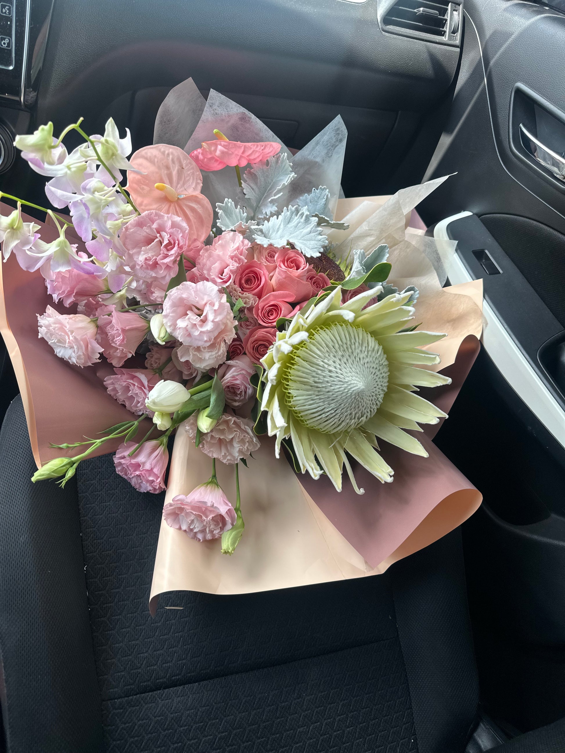 • Flor Protagónica: Una (1) Protea King espectacular.