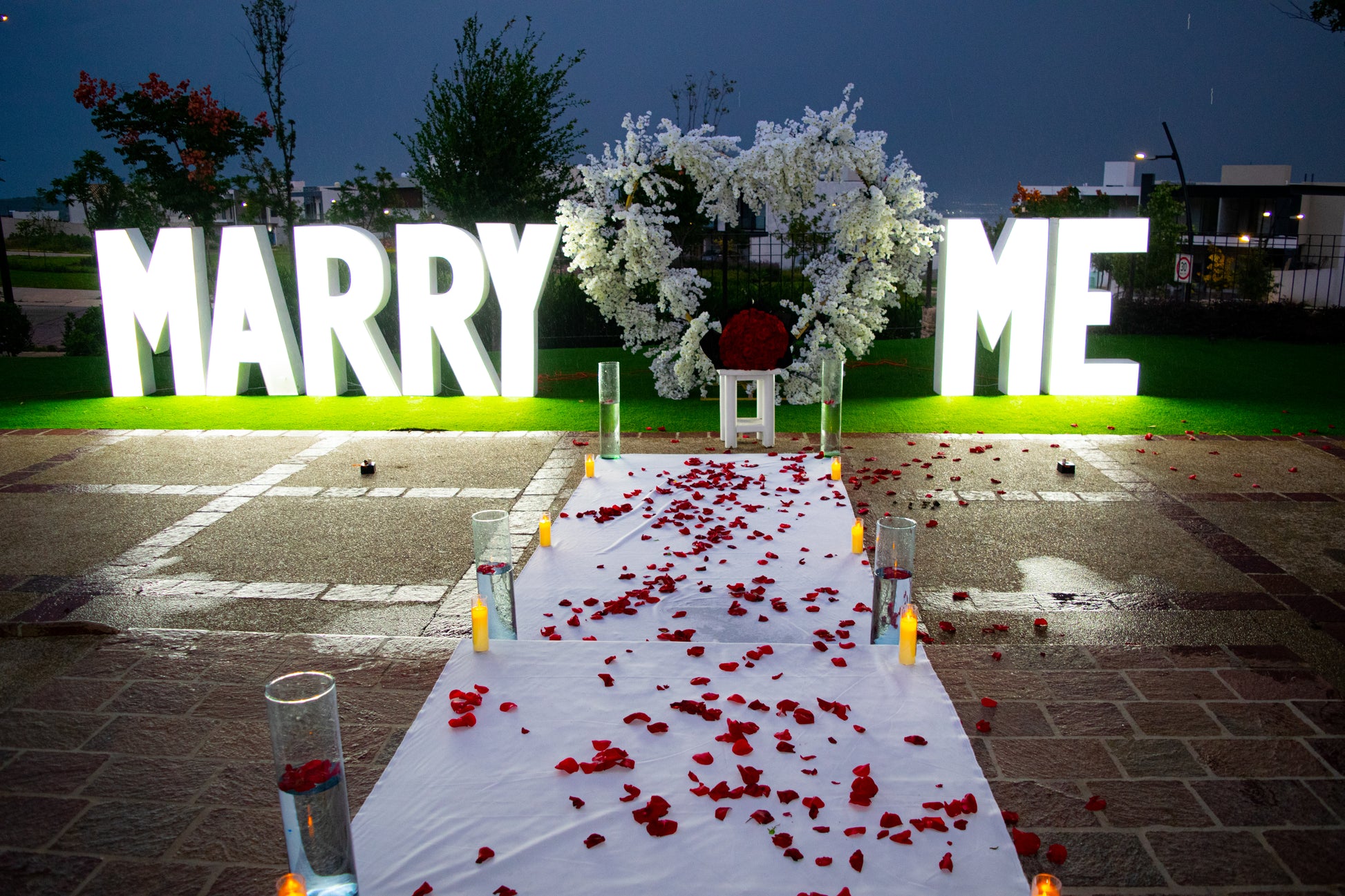 El escenario ideal para una propuesta de matrimonio espectacular. Este set incluye letras iluminadas de 1.45 metros de alto formando la frase “MARRY ME”, perfectas para crear un ambiente romántico, elegante y lleno de luz. Ideal para jardines, terrazas o salones, y puede complementarse con arreglos florales, velas y pétalos para hacerlo aún más especial.